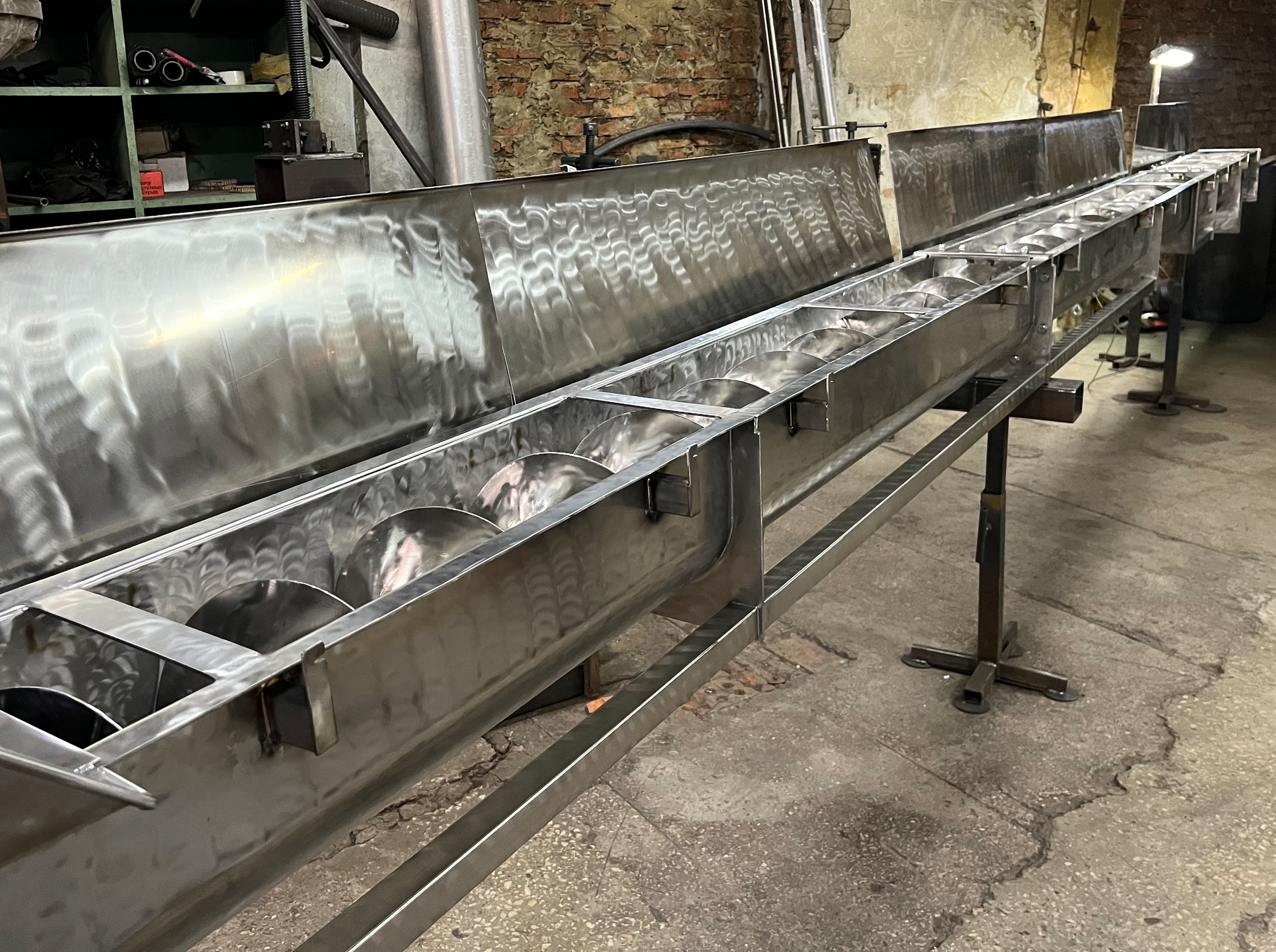- Стійкість до хімічних речовин: Використання нержавіючих матеріалів дозволяє експлуатувати конвеєри навіть у агресивних середовищах, таких як хімічна промисловість або обробка харчових продуктів.