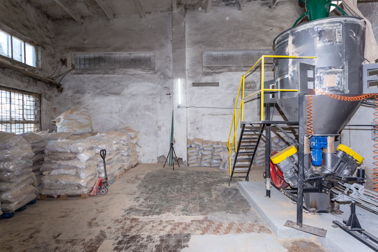 Бункер із ворошилкою запобігає зависанню матеріалу та забезпечує рівномірний потік сировини у прес, що сприяє стабільній роботі обладнання.